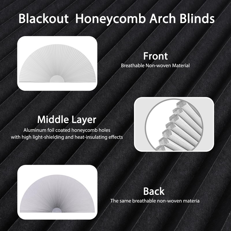 - Half Circle Window Shade:Arch window blinds are made of unique honeycomb structure, with different colors on the front and back, both sides can be installed, with good heat insulation and noise reduction effect, and the cuttable design makes it suitable for many different windows