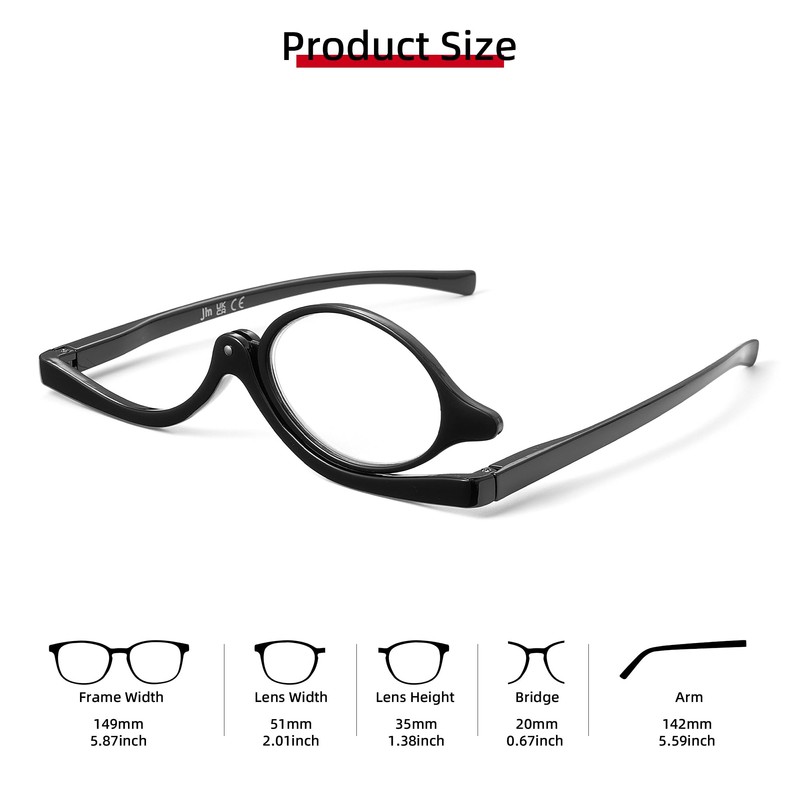 - Designed for make up - Makeup Readers with one flip down lens, when you try to makeup your left eye, you can to switch the lens to your right, for right eye switch left.