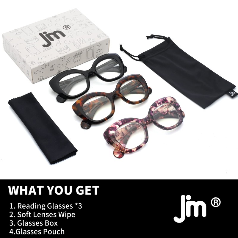 - You can get 3 pairs of reading glasses at once, store a pair at home, workplace or other place you need them. Avoid spending time finding glasses.