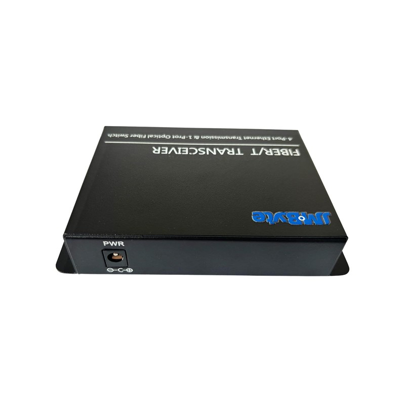 JM-Byte Unmanaged Fiber Media Converter, Ethernet Switch, 4 × 10/100/1000Mbps RJ45 Ports, 1 Gigabit SFP Uplink, Auto-MDI/MDIX, Plug & Play, No Configuration Required, Metal Casing (JM-CN2053-G)