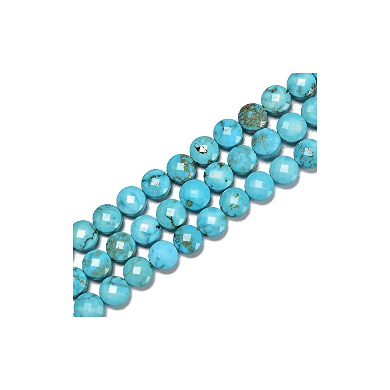 - Material: Blue Turquoise (Magnesite Turquoise) Shape: Faceted Coin Color: Blue Note: -Gemstone bead sizes are approximate and may have a +/- 0.5mm difference. -Gemstone bead drill hole sizes are approximate and may have a +/- 0.2mm difference.