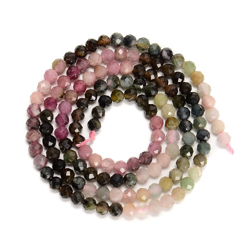 • Material: Natural Tourmaline (Not Treated or Dyed) Shape: Faceted Round Color: Multi-color
