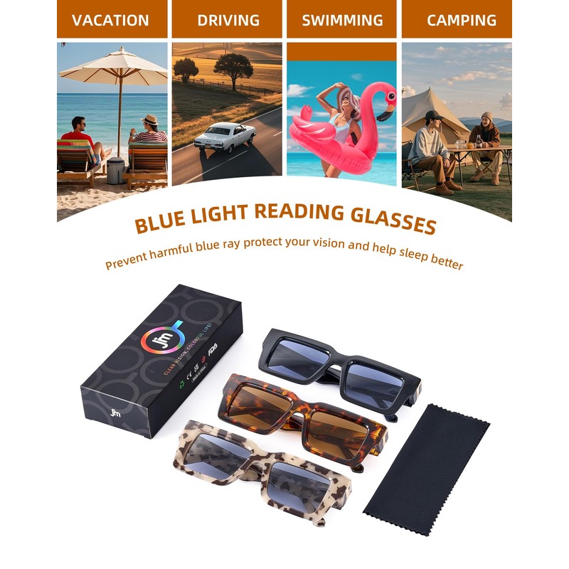 - 【COMPLETE UV PROTECTION】Experience complete protection from UVA and UVB rays. JM reading sunglasses block 100% of harmful UV rays and also filter out glare reflected from roads, water, snow, and other horizontal surfaces. Restore true colors to your eyes while providing optimal eye protection