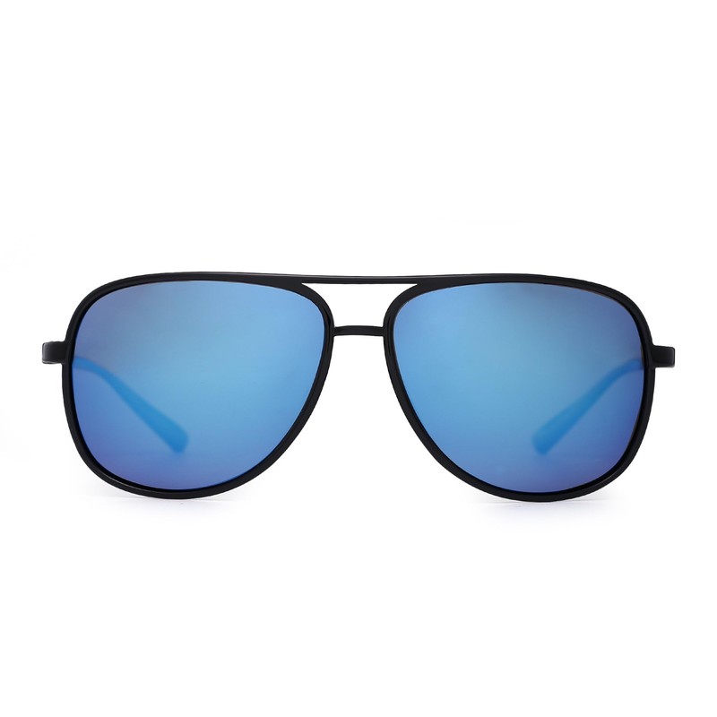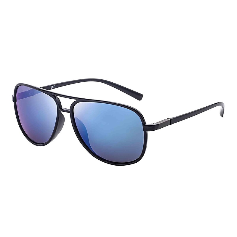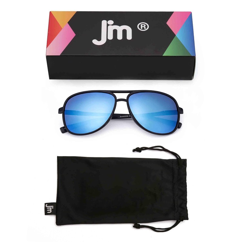 JM Retro Polarized Aviator Sunglasses Mirror Lightweight Eyeglasses for Men Women (Shiny Black/Polarized Mirrored Blue)