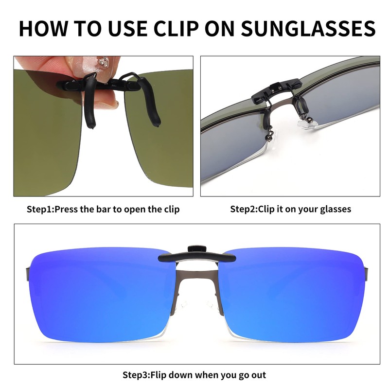JM Rimless Rectangle Clip on Sunglasses Lightweight Polarized Eyeglasses Men Women (Mirror Blue)