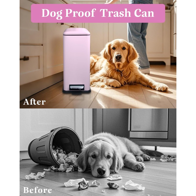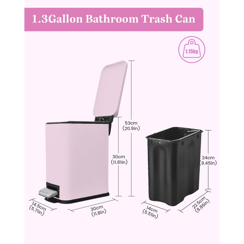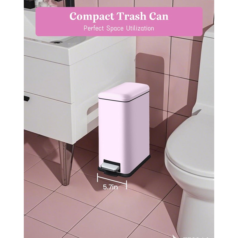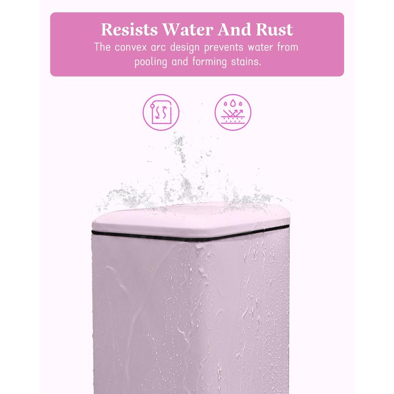 - Soft Close & Stay-Open Lid: This small pink trash can is equipped with a lid that closes quietly and gently, ensuring minimal noise to avoid disturbing your family. Additionally, the metal trash can lid can be manually opened to 90° and secured in that position for effortless waste disposal.