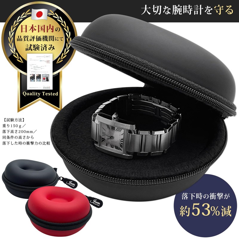 JMARS Watch Mobile Case with Cushion to Protect Watches, Drop Impact Tested by Domestic Evaluation Organization, leather red, Casual / Travel / Sports Gym / Business / Formal