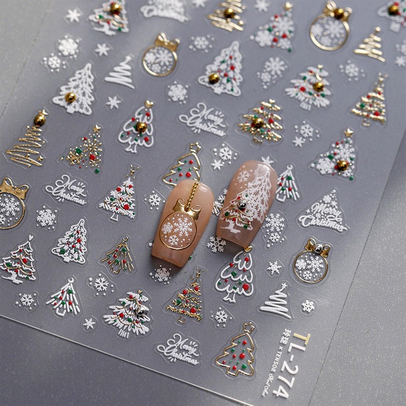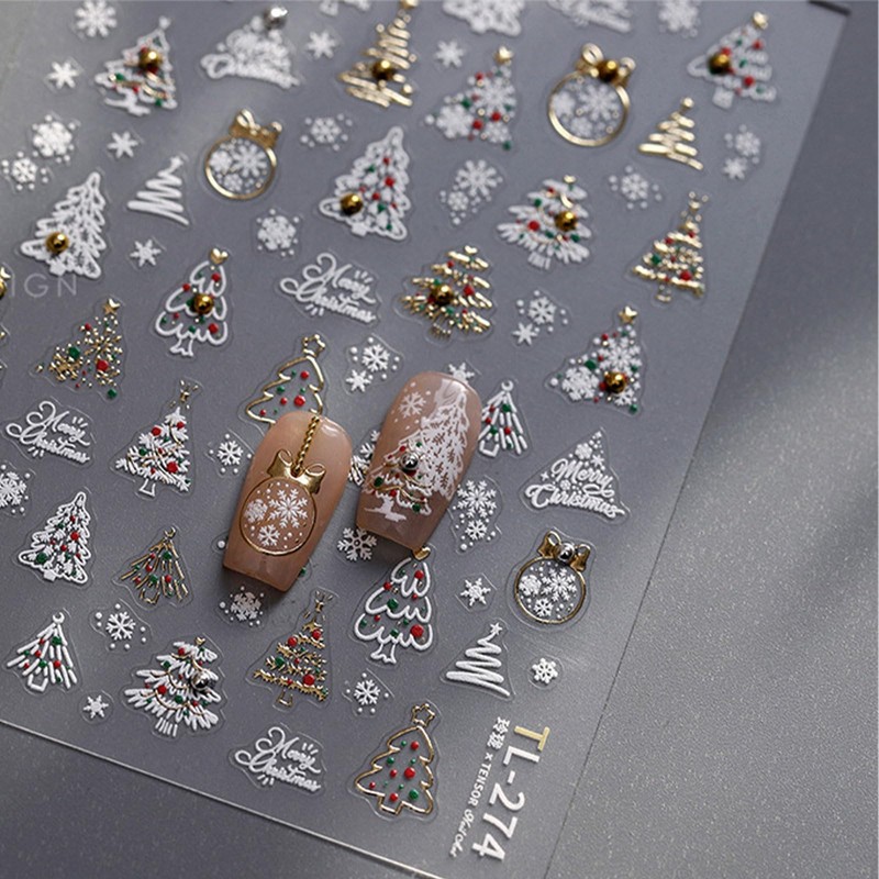JMEOWIO 3D Embossed Christmas Snow Globe Nail Art Stickers Decals Self-Adhesive Snowflake 5D Nail Supplies Nail Art Design Decoration Accessories 1 Sheets
