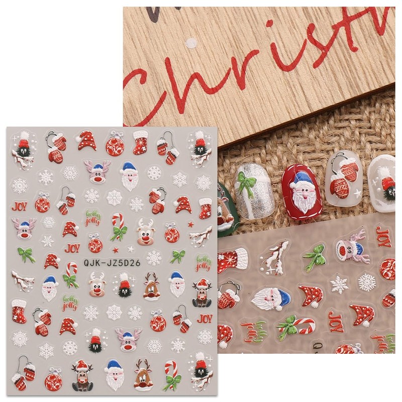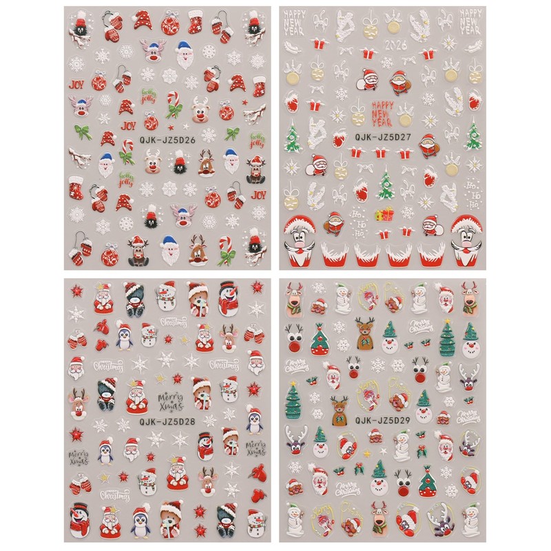 JMEOWIO 3D Nagelsticker Weihnachten Schneeflocke süß Nail Art Sticker Selbstklebend Nagelaufkleber 5D Stereoskopisch Dekoration Nageldesign Zubehör 4 Blatt