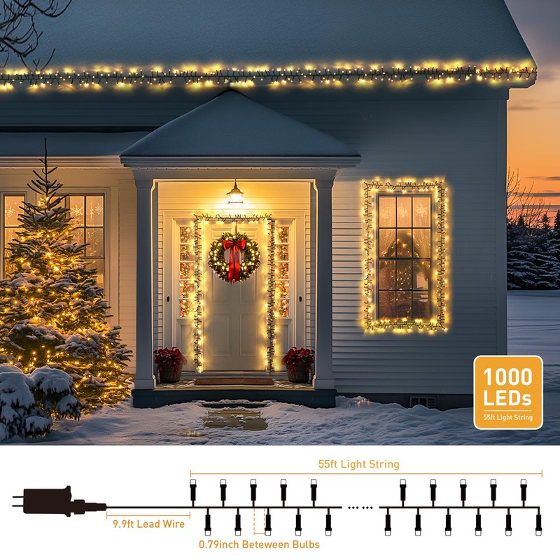 - Christmas Decor: Light up your space with a bright and warm glow using 1000 LED cluster lights measuring 55 feet. This is ideal for Christmas decorations, like Christmas trees or garlands, setting an enchanting festival mood. Note: The sets of cluster lights are unconnectable.