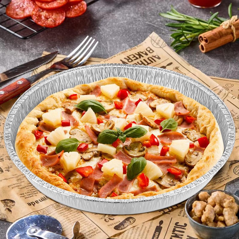 - Más que una bandeja para pizza: las sartenes desechables de 12 pulgadas ofrecen más que una superficie para hornear pizza. Son una alternativa práctica y reutilizable a las bandejas de plástico y espuma, proporcionando una gran comodidad para panaderos, cocineros y amas de casa. Haz que tu experiencia de cocción sea más fácil y agradable con estas bandejas de aluminio de calidad