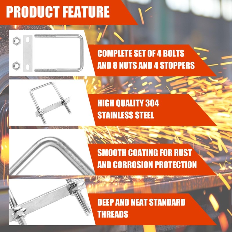 • Advantage package: our value package is available in two options. Includes 4 U bolts, 8 nuts and 4 stoppers. All additional accessories are made of stainless steel and are ideal for heavy duty applications