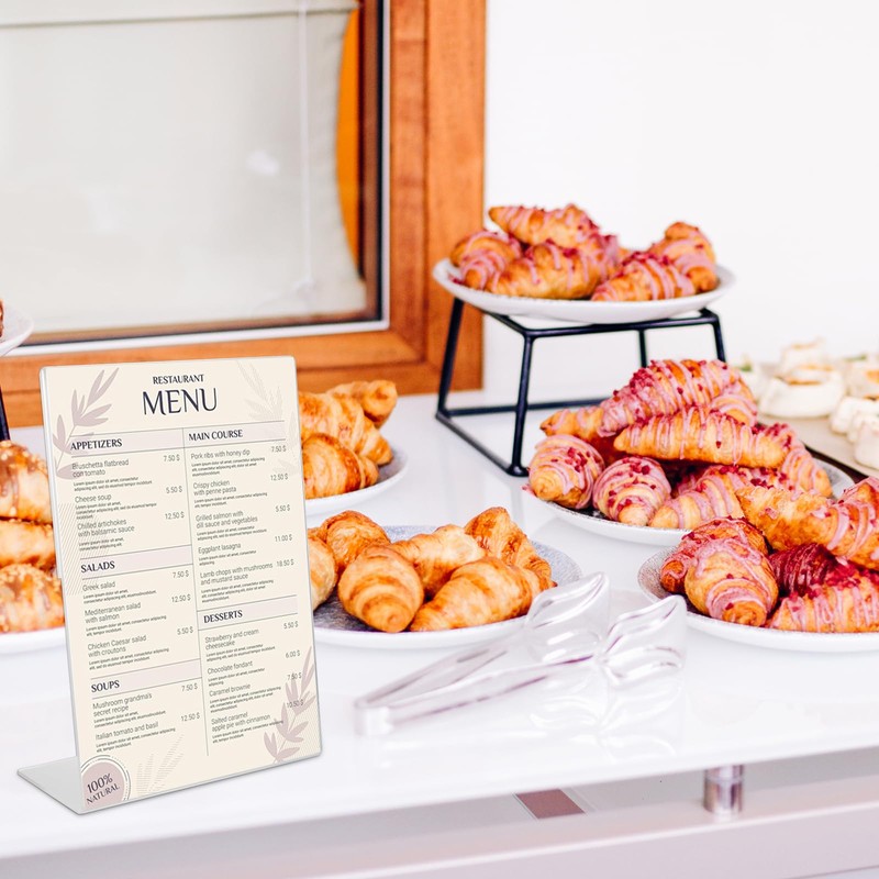 - Widely used: the package contains 8 packs of 14.8 x 21 cm acrylic sign holders A5. Very easy to assemble, can be used for displaying ads, flyers, brochures, etc., suitable for home, office, school, restaurant, church, hotel, exhibitions, reception areas, weddings and more.