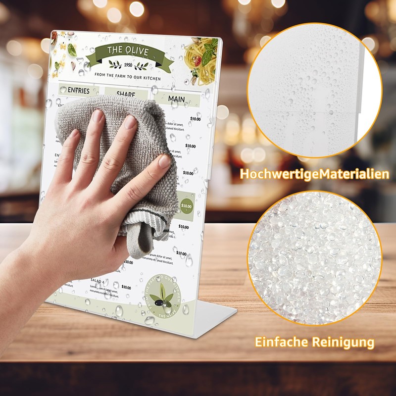 - Quality assurance: the bevelled opening of this A5 acrylic display stand is convenient for inserting paper. Please tear off the protective film on the surface before use.