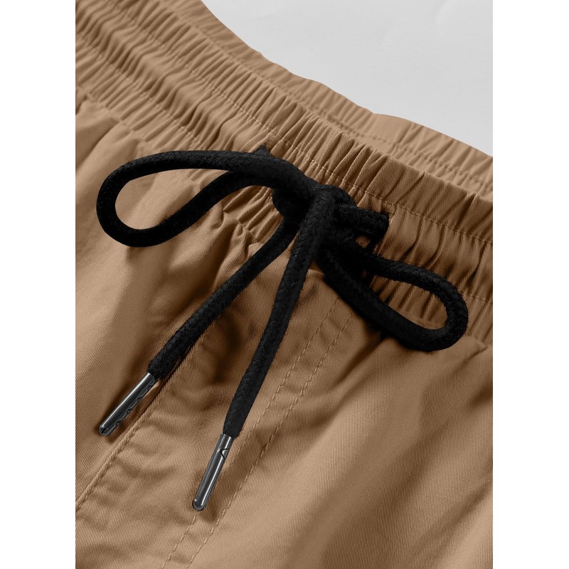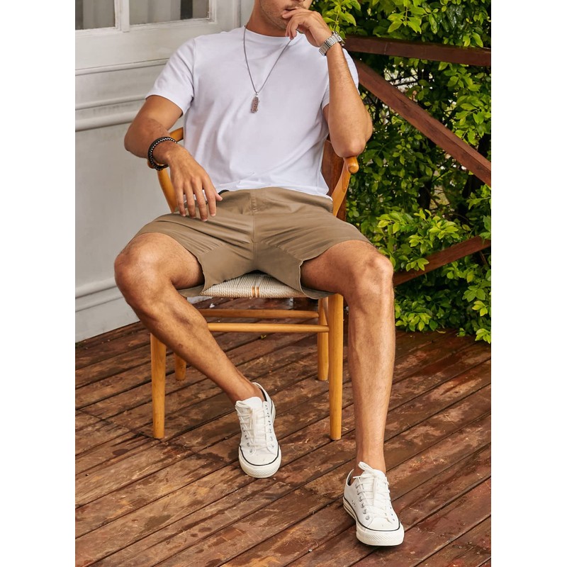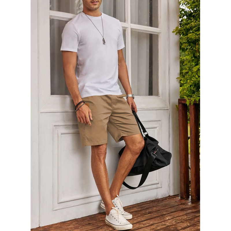 JMIERR Men's Summer Chino Shorts Cotton Elastic Waist with Pockets, khaki