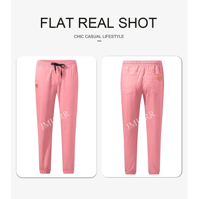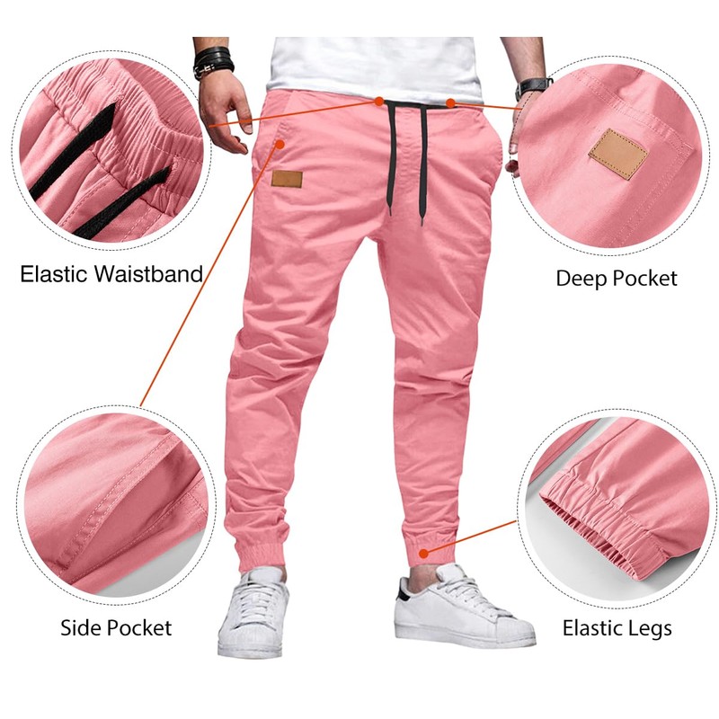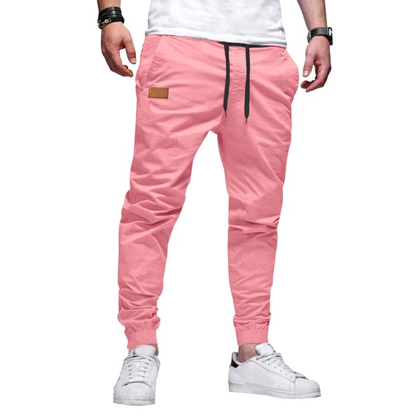 JMIERR Mens Casual Joggers Pants - Cotton Drawstring Chino Cargo Pants Twill Track Jogging Sweatpants Travel with Pockets, 2XL, Peach Blossom