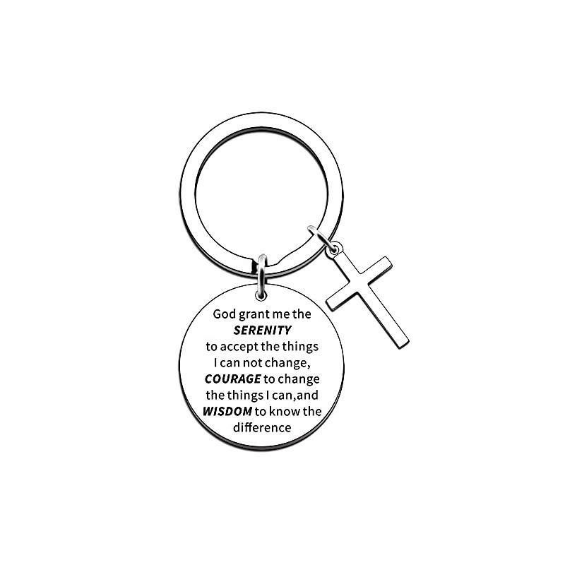 JMIMO God Grant Me The Serenity Prayer Sobriety Quote Keyring Gift Christian Inspirational Keychain for Family Friends Cross Keyring Birthday Religious Recovery Present