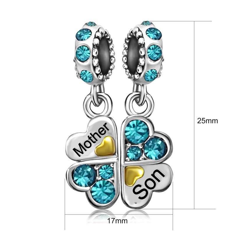 JMQJewelry Clover Mom Mama Mother Heart Love Birthday Birthstone December Charm for Bracelets Thanksgiving Christmas Mothers Day