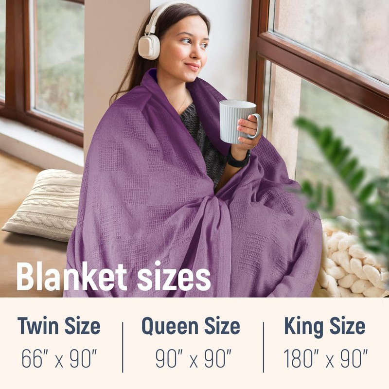 - MULTIPURPOSE WAFFLE WEAVE THROWS FOR HOME, TRAVEL & BEYOND: These super-versatile cotton throw blankets are great for a variety of uses all over your home. Drape them over your beds, chairs or sofas as a decorative item to add coziness to any space, use them as your thin blanket for summer or layer them over your sheets for some extra warmth during winter. They even work great as a lightweight travel throw or as a comfy hotel and hospital blanket.
