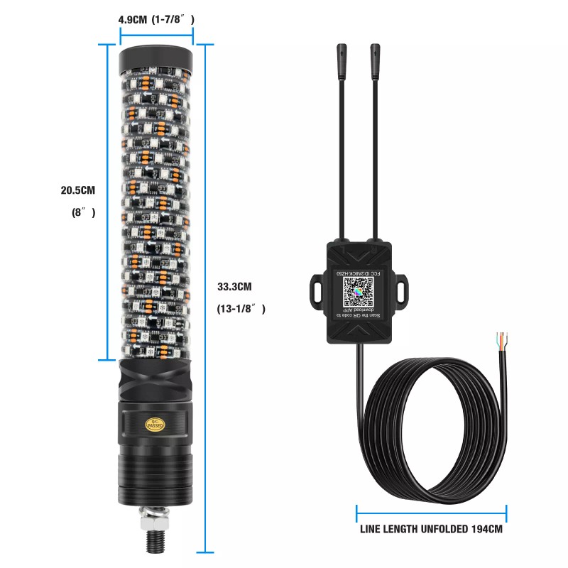 JMTBNO 2X 1FTT ATV Fat Whips Thick Spiral Chasing RGB Whip Lights For ATV UTV RZR SXS