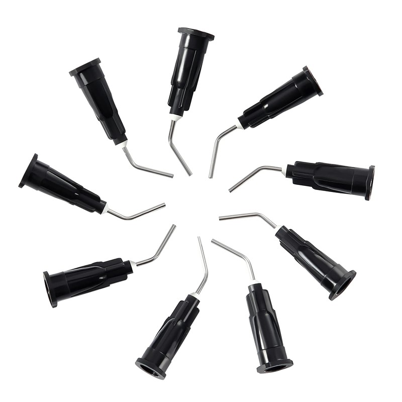 - Bent Blunt Dispensing Needles: The curved angle is convenient to use, especially inside the oral cavity. The blunt point needle design is not suitable for medical injection
