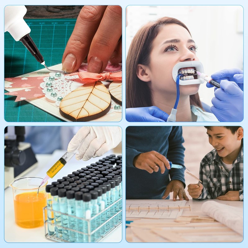 - Widely Used: mostly used for impression material or resin injection filling, dental irrigation, also for DIY bonding, jewelry production, handicraft processing, electronic components, and so on