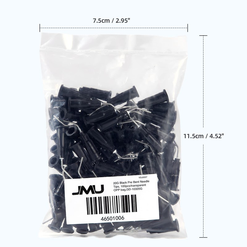 JMU 300Pcs Bent Dispensing Tips 20g, Blunt Tip Dispensing Needle, Dental Pre Bent Flow Dispensing Etch Tips, Disposable Oral Irrigation Needle Tips, Black