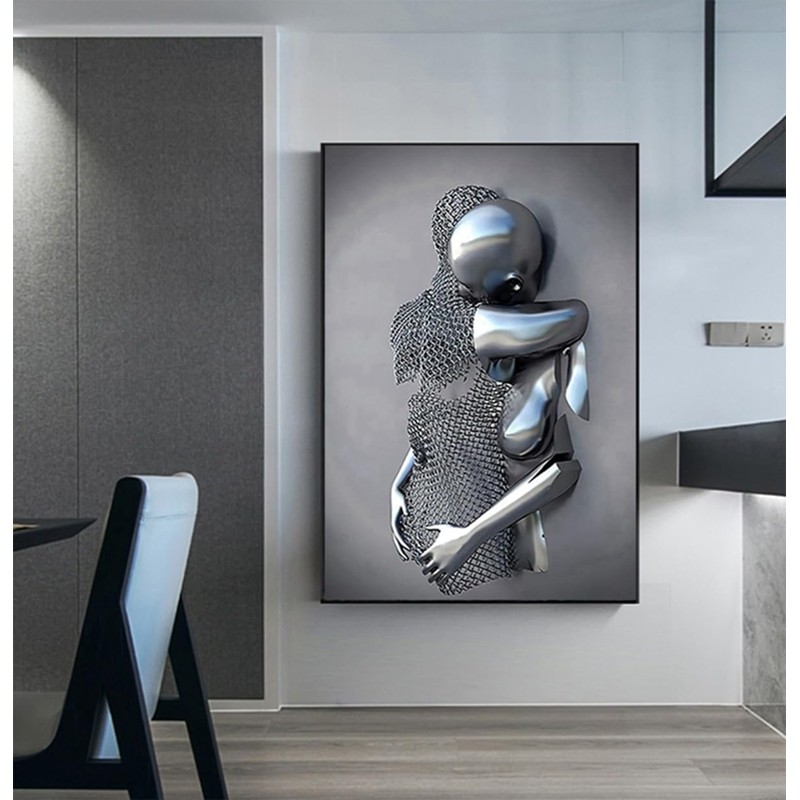 JNAOZI 3D Lovers Sculpture Metal Figure Statue Canvas Painting Love Hug Abstract Canvas Picture, Frameless (Poster 02, 20 x 30 cm x 1 Piece)