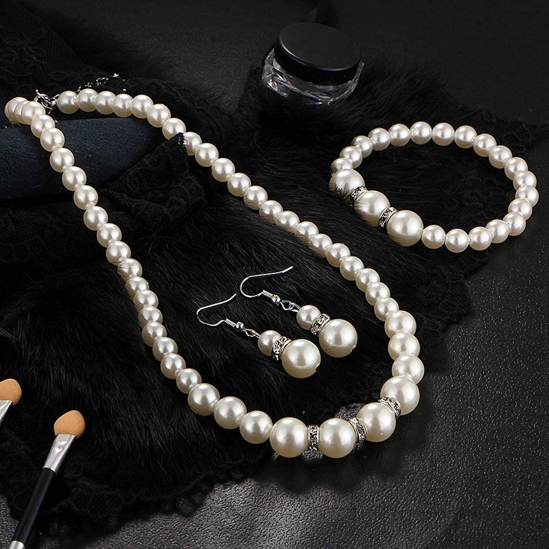 JNF Juego de collar de perlas para mujer con diamantes de imitación, collar y aretes para novia, fiesta, boda, joyería, Perla de imitación, Perla sintética