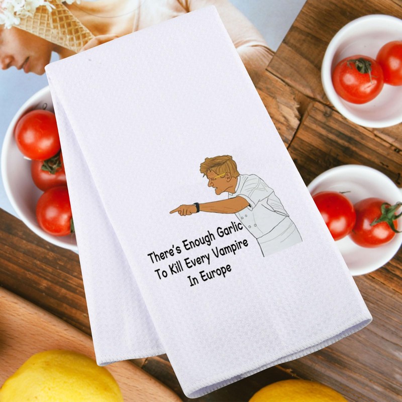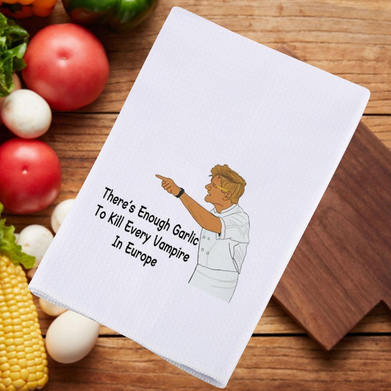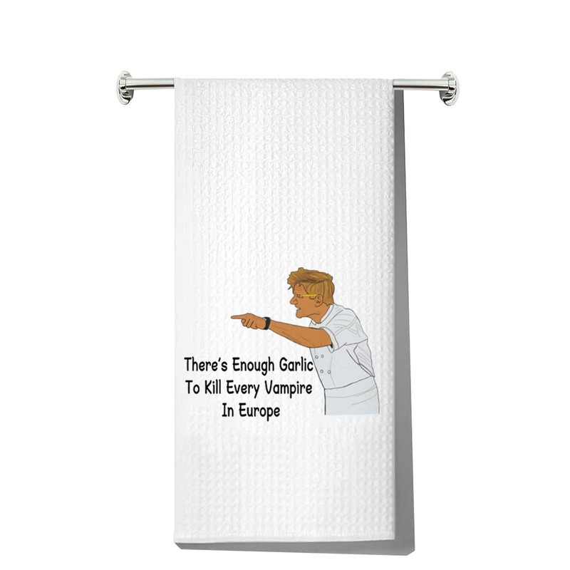 JNIAP Chef Ramsay Kitchen Towel Ramsay Kitchen Gifts There's Enough Garlic to Kill Every Vampire in Europe Housewarming Gift (Enough Garlic kt)