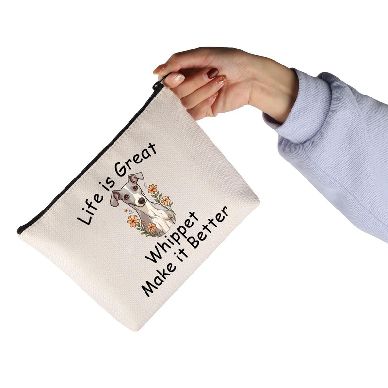 JNIAP Whippet Dog Gift Life is Great Whippet Make it Better Cosmetic Bag Whippet Lover Gift (Life is Great Whippet Bag)