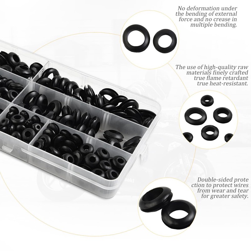 - The rubber grommet set is flexible, strong and wear-resistant, high temperature resistant, oil resistant, durable.