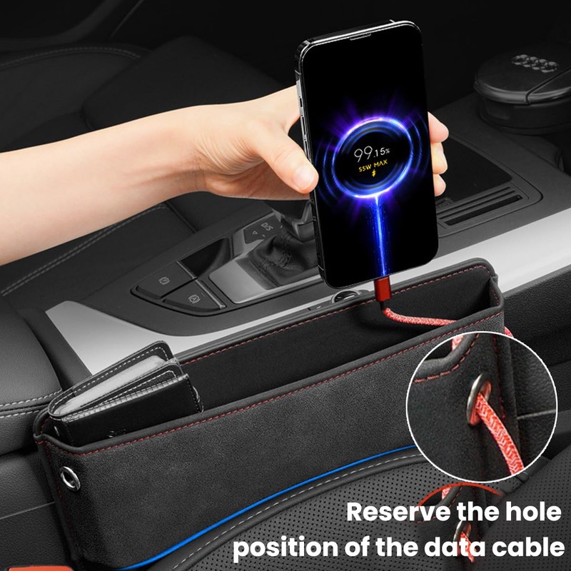 - 【Multifunctional】: This car seat crevice organiser can hold keys, mobile phones, wallets, credit cards, pens, coins, banknotes or other bits and pieces of small items, and there is a data cable hole on the side of the organiser to facilitate yours mobile phone charging.