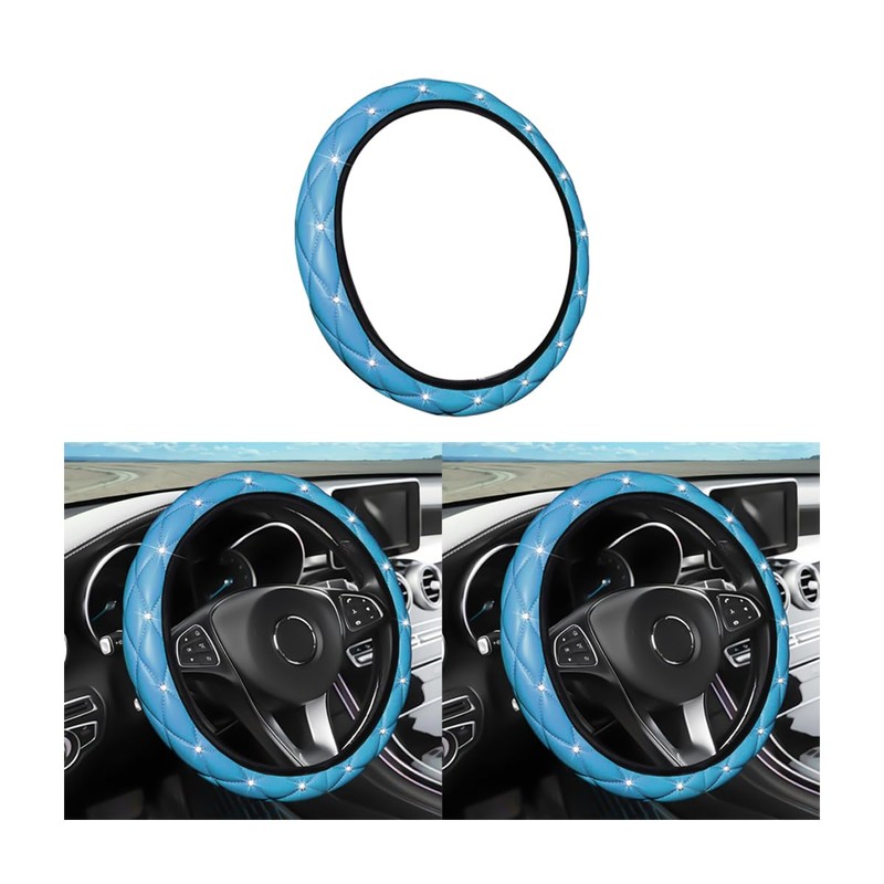JNNJ Leather Steering Wheel Cover, Diamond Blue, Universal for Car, Soft Protector with Crystal Rhinestones