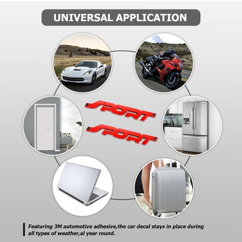 - 【Functions & Uses】: This is a fashionable car exterior decoration with SPORT lettering, which is in line with the popular car signage aesthetics and can make your car more beautiful. It can be used as body decoration or can be replaced with body decorations for different car models to add sparkle to your car.