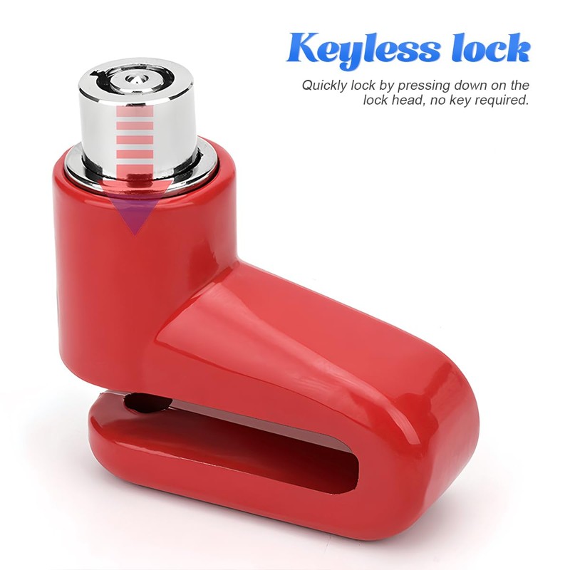 - 【Easy to Use】: This motorbike disc brake lock is compact and lightweight, keyless locking, no key required, just press the lock cylinder, you can easily lock the door. (Can be used with a reminder rope, supports items with a hole diameter greater than or equal to 6mm and thickness less than or equal to 8mm).