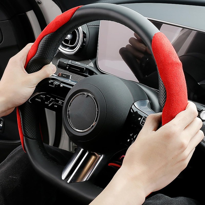- 【UNIVERSAL TYPE】This sporty high quality luxury suede steering wheel cover is universal and can be used on round or D shaped steering wheels up to 15 inches in diameter and is compatible with most models of cars, trucks, RVs, SUVs, vans and more. Add a personal touch to your car steering wheel.
