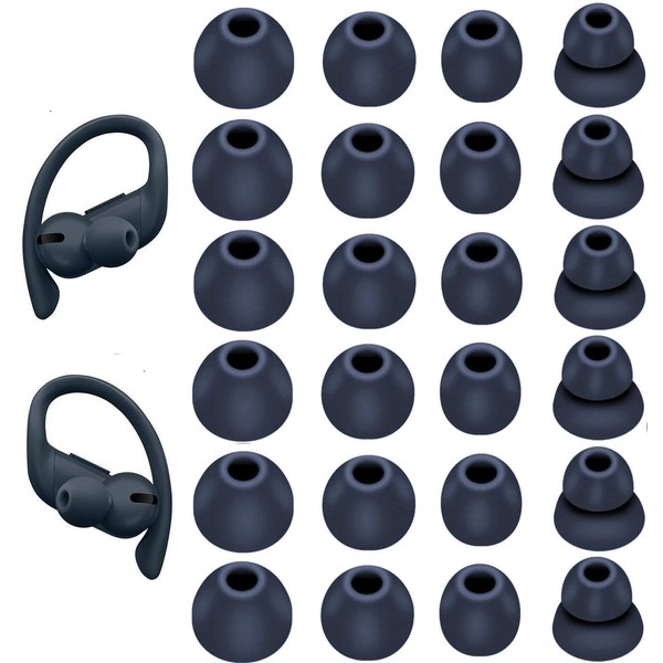 JNSA Replacement for Powerbeats Pro Ear Tips Eartips Ear Plug Ear Cap,Navy, S/M/L/Double Flange Silicone Ear Tip 4 Size 12 Pairs, Fit in Charge Case, 12 Pairs,Navy, 23