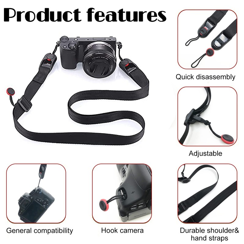 - Quick and easy to remove: the adjustable black camera strap shoulder strap has quick-release buckles at both ends of the strap, so you can remove and attach the shoulder strap quickly and easily.