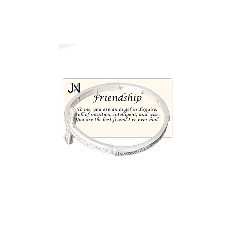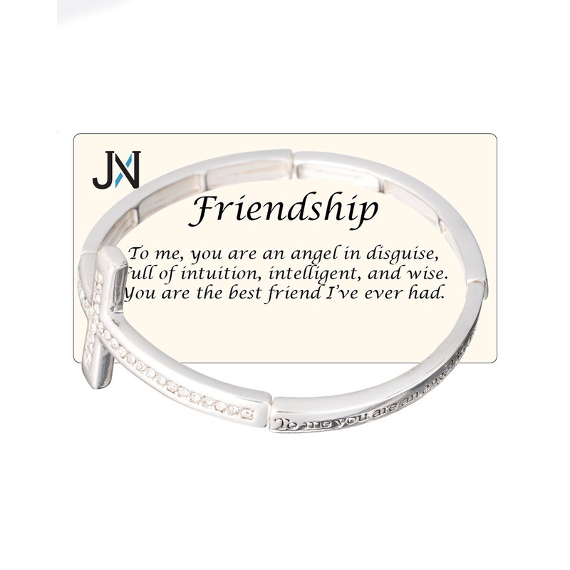 JNX Friendship Blessings Engraved Cross Stretch Bracelet with Inspirational card by Jewelry Nexus