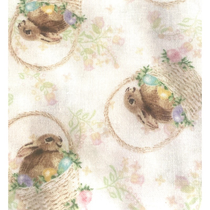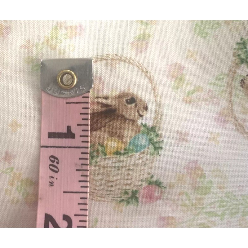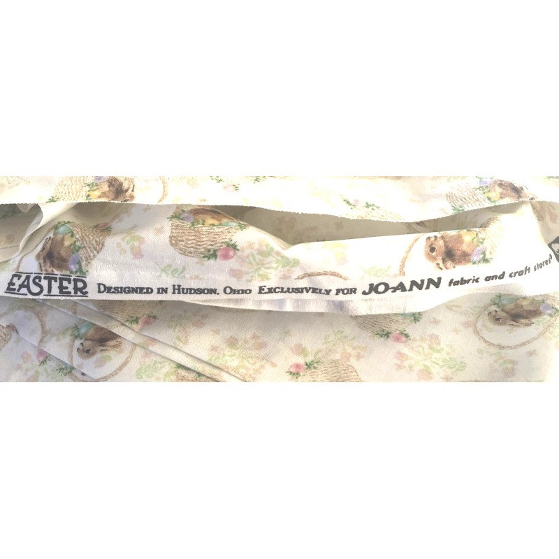 Jo-Ann JoAnn Easter Bunny Basket Fabric White Cute! BT Half Y #1