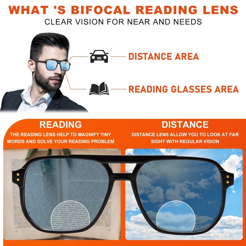 - 【SOLID MATERIAL & METAL SPRING HINGE】- Made with high-quality CP frame and metal spring hinge that can swing outward by 15°, these bifocal sunglasses are flexible, durable, suitable for both men and women as a fashionable accessory for daily wear. Rest assured that all accessories and materials do not contain harmful substances such as lead or bisphenol A."