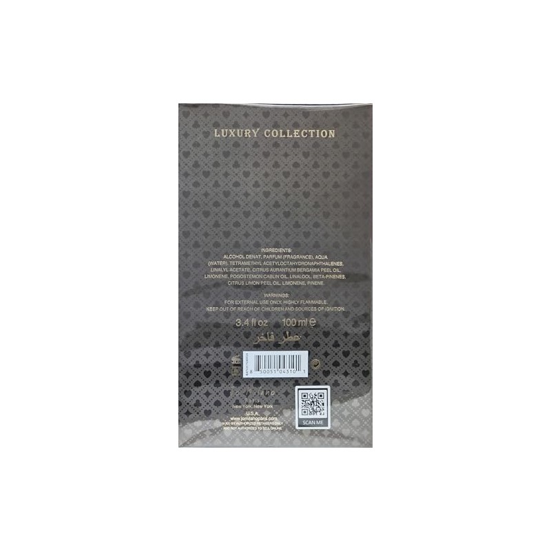 Experience the luxurious and captivating fragrance of Game of spades HIGH ROLLER by Jo Milano Paris. This unisex perfume is perfect for anyone looking to make a statement. Top Notes: The scent opens with a refreshing blend of Grapefruit, Bergamot, and Black Currant. Heart Notes: The heart notes consist of Ginger, Cinnamon, Citron and Cardamom which add warmth to the scent. Base Notes:The base notes are Pink Pepper and patchouli which provide depth and richness to the fragrance. The Game of spades HIGH ROLLER by Jo Milano Paris comes in a liquid form that is easy to apply. This single item perfume is an excellent choice for adding sophistication to your attire. Made in France: This regular edition perfume originates from France known for producing high-quality scents worldwide Absence Of Aerosol: This product has contained alcohol without any aerosol making it safe for everyday use > CraftedBy Jo Milano Paris: The brand that solely focuses on crafting exclusive perfumes with versatile scents that are loved worldwide, > Elevateyour style game with Game Of Spades High Roller Perfume by Jo Milano Paris!