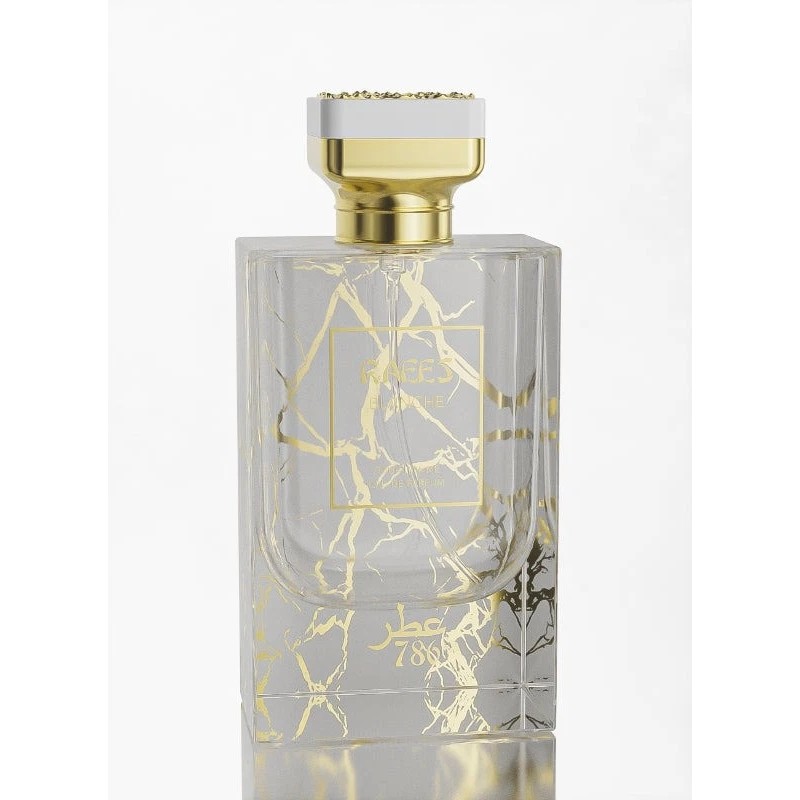 Fragrance Family: Amber Woody. Top notes: Heliotrope, Cumin, Bergamot. Heart notes: Bitter almond, Lavender, Jasmine. Base notes: Vanilla, Sandalwood, Amber. Design house: Jo Milano. Design house category: niche fragrance brand. Design house country: United States. Scent name: Raees Blanche. Gender: Men's. Category: Fragrance. SubType: EDP Spray. Size: 3.4 oz. Barcode: 850062582057. Jo Milano Men's Raees Blanche EDP Spray 3.4 oz Fragrances 850062582057.