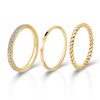 • HIGH QUALITY MATERIAL Total 3 packs 18k gold plated stainless steel stackable rings. Gold twisted rope ring, simple smooth ring and gold ring with full circle zirconia can be worn together or in a variety of combinations with other jewellery. Durable finish that is nickel-free, lead-free and hypoallergenic, safe to wear. The highly polished surface is smooth, and it is very shiny and comfortable.