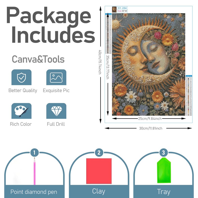 - Moon&Sun Diamond Painting Kits: Our 5d diamond art kits for adults can be easily completed by beginners, with love as the theme, bringing you a calm and pleasant experience;diamond painting kit includes the canvas, beads,tools needed for handmade crafting