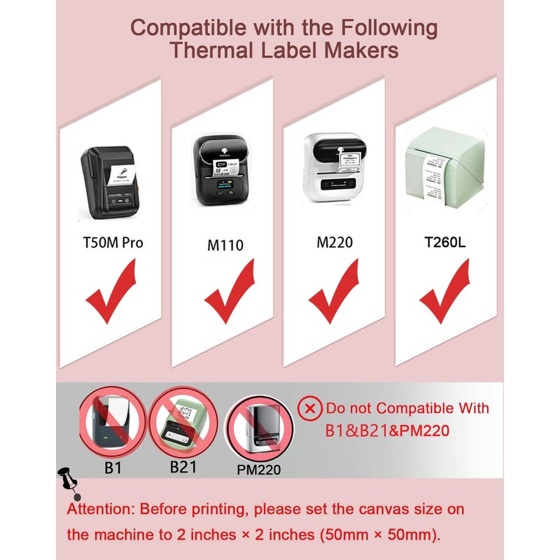 - [Wide compatibility]: These thermal stickers work seamlessly with ROLLO, for ZEBRA, for MUNBYN, for POLONO, for Phomemo, T50M, B21, B1, M110, M106, M220, M260 and various other thermal label printers. (Not suitable for use with DYMO and Brother printers).
