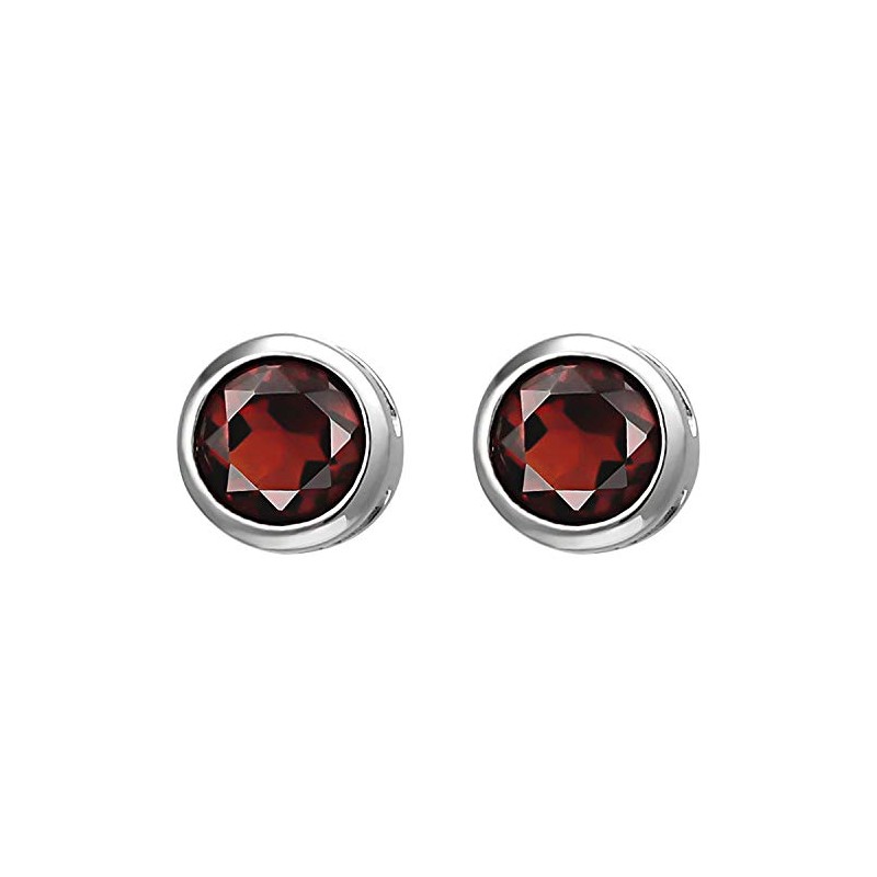Jobo Women's Stud Earrings 925 Sterling Silver 2 Garnet Red Earrings, Silver, Garnet