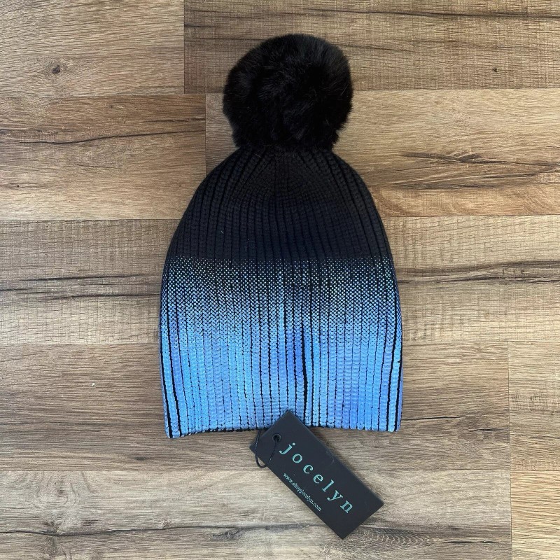 Jocelyn NWT Black Blue Metallic Faux Fur Beanie Winter Hat One Size