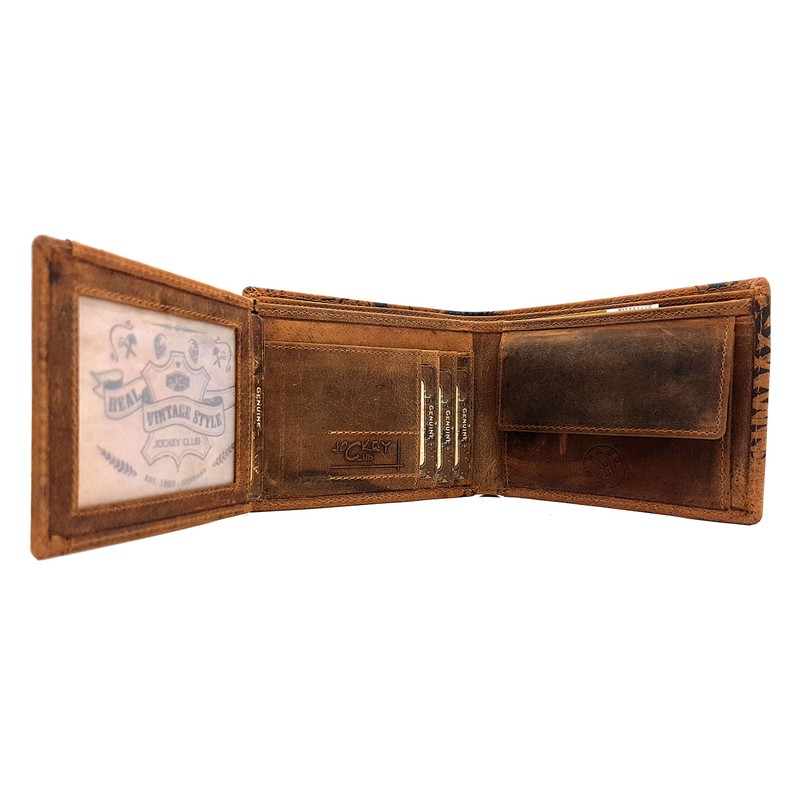Jockey Club Genuine Buffalo Full Leather Wallet with RFID Protection, Landscape, Natural Hunter Leather Wallet Skull, brown, coin purse